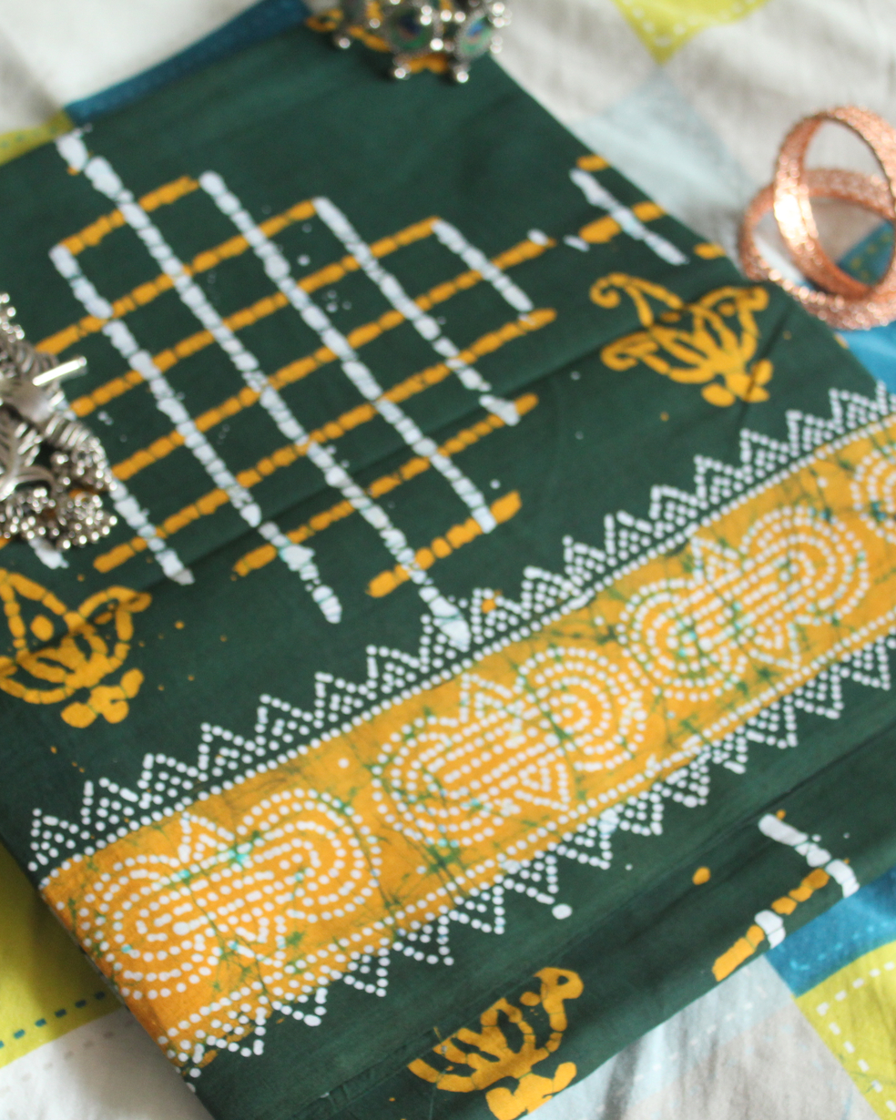 Kolam with Gopuram Style Sungudi Saree without blouse(dark green)MSS0008