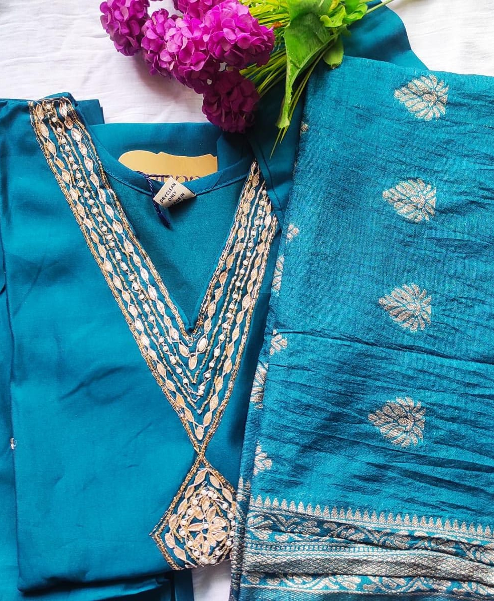 + Free ShippingA chic Peacock Blue Kurti Set that brings effortless elegance to your everyday style.